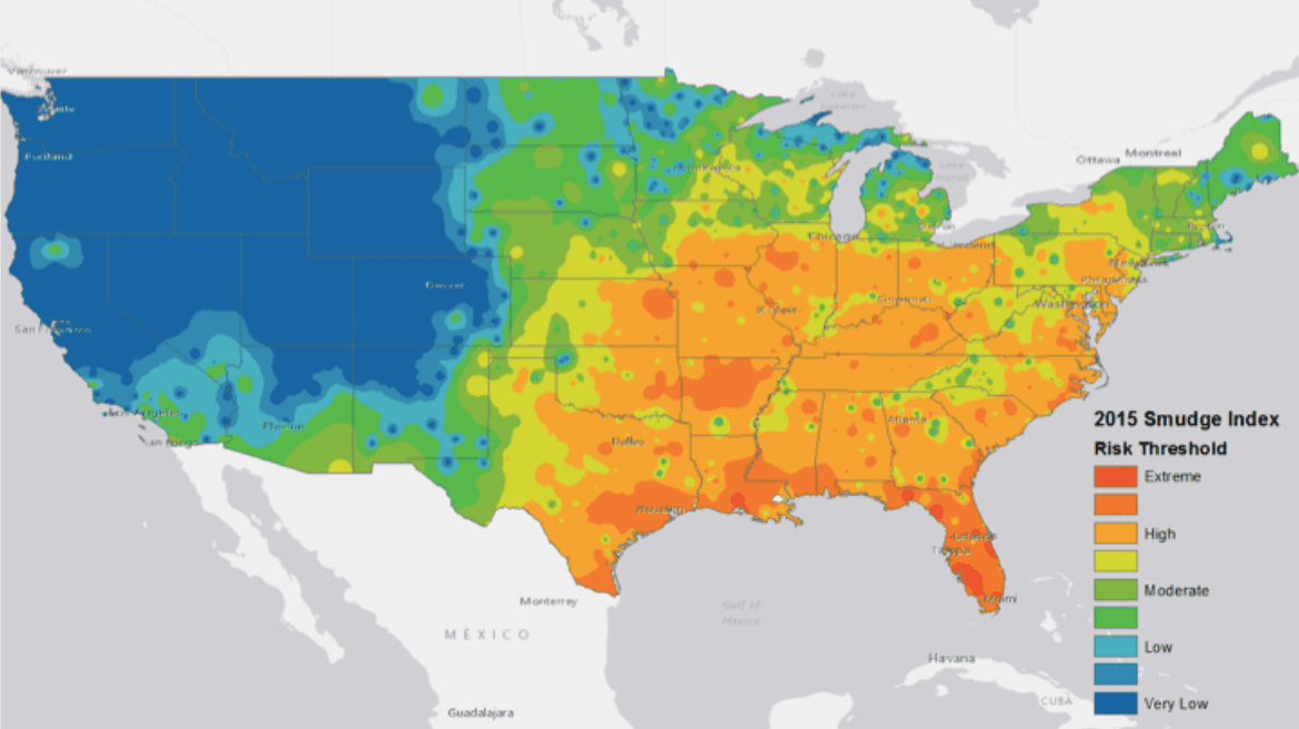 The map above is an example of one beauty-related index developed by out insights team, the Smudge Index. The makeup smudge index is based on several weather metrics such as temperature, humidity, precipitation and dew point.
