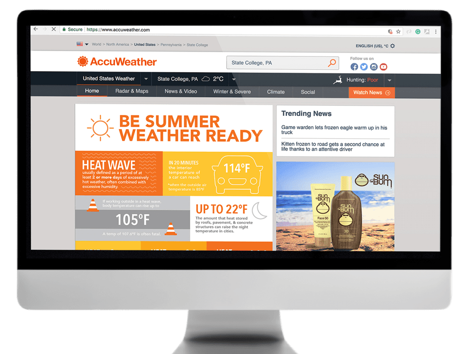 Sun Bum will reach the AccuWeather mobile audience with a user-first experience, sharing an e-commerce CTA.