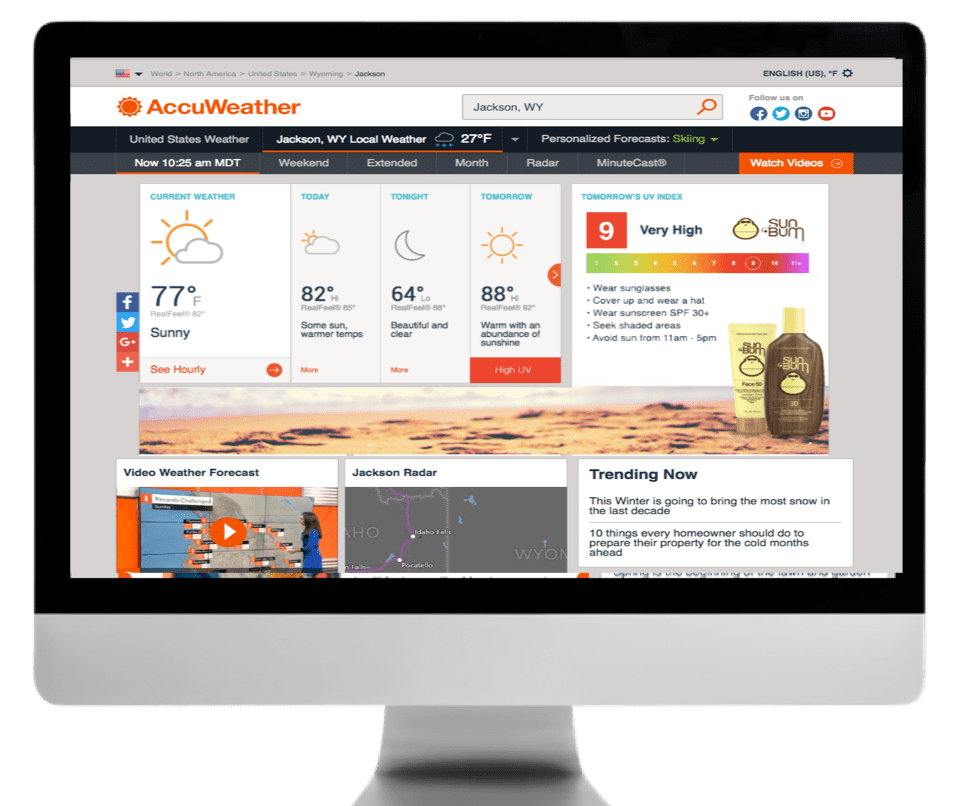 AccuWeather has developed a 360 package that reaches the Boho Beauties and Beaus based on their demographic breakdown, interests and location. With proprietary UV index forecasting layered on, Sun Bum will reach their highly engaged and actionable audience at the right place and time.